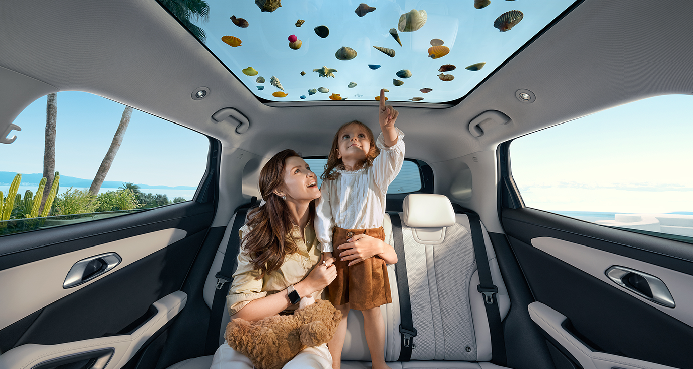BYD ATTO 2 DM-i on varustatud panoraamkatusega, mis pakub laia vaadet ümbrusele ja laseb loomulikul valgusel salongi voolata, luues heleda, avatud ja meeldiva sõidukeskkonna.